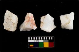 | Description / विवरण | There are n 4 flake cores. All of them are fully fluted flake cores without any trace of crested ridge flakes. Some have flat base. Some have sharp edges while some have blunted edges. |