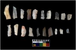 | Description / विवरण | There are n 20 flakes tool; there are multidirectional irregular scar pattern on them, made of short flakes and few have tapering edges. |