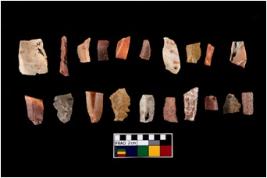 | Description / विवरण | There are n-20 of microliths, all of them are of chert. Some of them are partially broken. They show variation in colour, size and shape. Some of them are blunted back baldes, points, triangles, trapezes, crescent and truncated. |