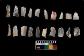 | Description / विवरण | There are n 20 flakes tool; there are multidirectional irregular scar pattern on them, made of short flakes and few have tapering edges. |