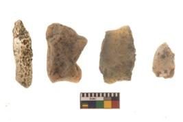 | Description / विवरण | There are n 4 flakes tool; there are large flakes with sides trimmed, Marks of secondary flaking are present on the both the faces.The dorsal is relatively flat. |