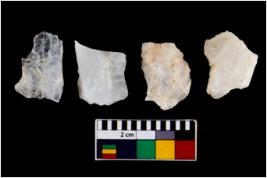 | Description / विवरण | There are n 4 flake cores. All of them are fully fluted flake cores without any trace of crested ridge flakes. Some are tapering at one end. Some have flat base and some have blunted edges. |