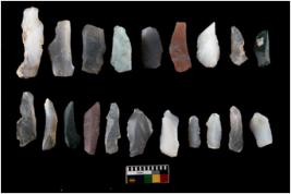 | Description / विवरण | There are n 20 Flake tool; There are multidirectional irregular scar pattern on them. few have blunt edges, Some of them are tapering at one end. |