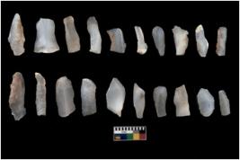 | Description / विवरण | There are n 20 Flake tool; There are multidirectional irregular scar pattern on them. few have blunt edges, Some of them are tapering at one end. |