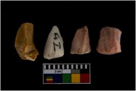 | Description / विवरण | There are n-4 of utilized flake cores. There are multidirectional irregular dominant scar pattern on both dorsal and ventral face of the cores. |