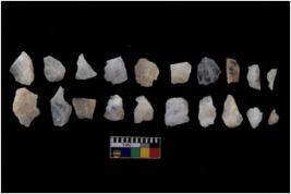 | Description / विवरण | There are n 20 Flake tool; There are multidirectional irregular scar pattern on them. few have blunt edges, Some of them are tapering at one end. |