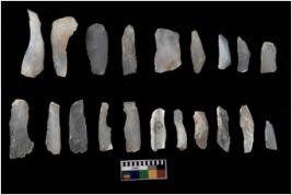 | Description / विवरण | There are n 20 flakes tool; there are multidirectional irregular scar pattern on them, made of short flakes and few have tapering edges. |