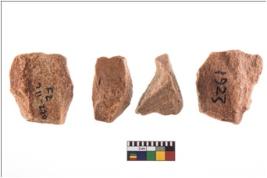 | Description / विवरण | There are n-4 of utilized flake cores. There are multidirectional irregular dominant scar pattern on both dorsal and ventral face of the cores. Some of them bulge of percussion and some are flat flake cores. |