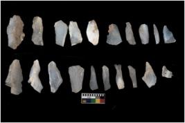 | Description / विवरण | There are n 20 Flake tool; There are multidirectional irregular scar pattern on them. few have blunt edges, Some of them are tapering at one end. |