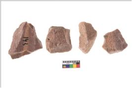 | Description / विवरण | There are n-4 of utilized flake cores. There are multidirectional irregular dominant scar pattern on both dorsal and ventral face of the cores. Some of them bulge of percussion and some are flat flake cores. |