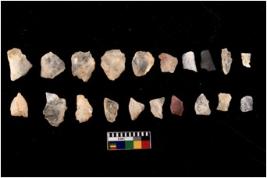 | Description / विवरण | There are n 20 flakes tool; there are multidirectional irregular scar pattern on them; made of short flakes and few have tapering edges. |