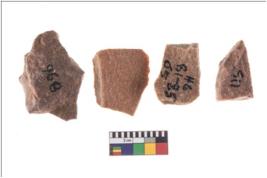 | Description / विवरण | There are n-4 of utilized flake cores. There are multidirectional irregular dominant scar pattern on both dorsal and ventral face of the cores. Some of them bulge of percussion and some are flat flake cores. |