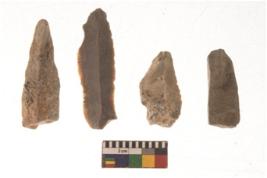 | Description / विवरण | There are n 4 flakes tool; there are multidirectional irregular scar pattern on them; made of short flakes and all four have tapering edges. |