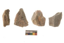 | Description / विवरण | There are n 4 flakes tool; there are multidirectional irregular scar pattern on them; made of short flakes and all four have tapering edges. |