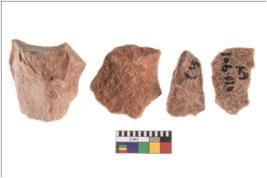 | Description / विवरण | There are n-4 of utilized flake cores. There are multidirectional irregular dominant scar pattern on both dorsal and ventral face of the cores. Some of them bulge of percussion and some are flat flake cores. |