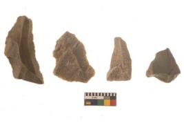| Description / विवरण | There are n 4 flakes tool; there are multidirectional irregular scar pattern on them; made of short flakes and all four have tapering edges. |