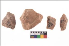 | Description / विवरण | There are n-4 of utilized flake cores. There are multidirectional irregular dominant scar pattern on both dorsal and ventral face of the cores. Some of them bulge of percussion and some are flat flake cores. |