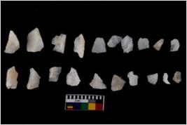 | Description / विवरण | There are n 20 Flake tool; There are multidirectional irregular scar pattern on them. few have blunt edges, Some of them are tapering at one end. |