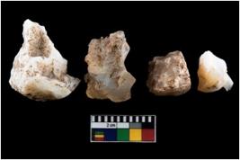 | Description / विवरण | These are n 4 of worked tools. They are tapering at one end and have sharp edges. They have round base and show dominant irregular scar pattern. They have broken tip. |