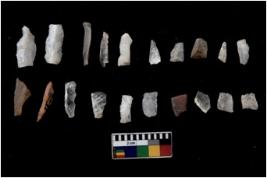 | Description / विवरण | There are n 20 Flake tool; There are multidirectional irregular scar pattern on them. few have blunt edges, Some of them are tapering at one end. |