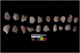 | Description / विवरण | Specimen of flakes Chips with prominent flaking marks. It made up of a short flakes with sides trimmed. |