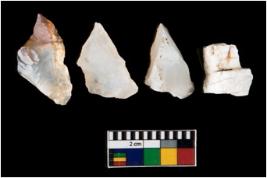 | Description / विवरण | There are n-4 of utilized flake cores. There are multidirectional irregular dominant scar pattern on both dorsal and ventral face of the cores. |