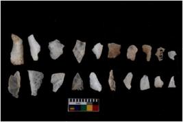 | Description / विवरण | There are n 20 flakes tool; there are multidirectional irregular scar pattern on them, made of short flakes and few have tapering edges. |
