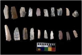 | Description / विवरण | There are n 20 Flake tool; There are multidirectional irregular scar pattern on them. few have blunt edges, Some of them are tapering at one end. |