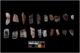 | Description / विवरण | There are n 20 Flake tool; There are multidirectional irregular scar pattern on them. few have blunt edges, Some of them are tapering at one end. |