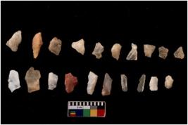 | Description / विवरण | There are n 20 flakes tool; there are multidirectional irregular scar pattern on them, made of short flakes and few have tapering edges. |