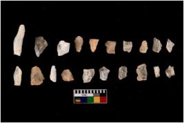 | Description / विवरण | There are n 20 flakes tool; there are multidirectional irregular scar pattern on them, made of short flakes and few have tapering edges. |