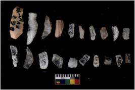 | Description / विवरण | There are n 20 flakes tool; there are multidirectional irregular scar pattern on them; made of short flakes and few have tapering edges. |