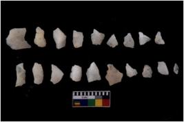 | Description / विवरण | There are n 20 flakes tool; there are multidirectional irregular scar pattern on them, made of short flakes and few have tapering edges. |