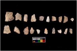 | Description / विवरण | There are n 20 flakes tool; there are multidirectional irregular scar pattern on them; made of short flakes and all four have tapering edges. |