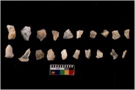 | Description / विवरण | There are n 20 flakes tool; there are multidirectional irregular scar pattern on them; made of short flakes and all four have tapering edges. |