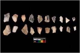 | Description / विवरण | There are n 20 flakes tool; there are multidirectional irregular scar pattern on them; made of short flakes and all four have tapering edges. |