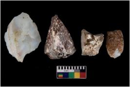 | Description / विवरण | There are n 4 flake cores. All of them are fully fluted flake cores without any trace of crested ridge flakes. |