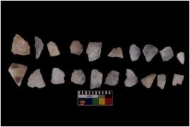 | Description / विवरण | There are n 20 flakes tool; there are multidirectional irregular scar pattern on them, made of short flakes and few have tapering edges. |