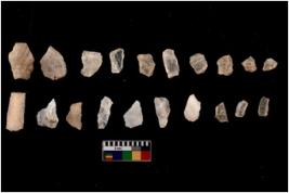 | Description / विवरण | There are n 20 flakes tool; there are multidirectional irregular scar pattern on them, made of short flakes and few have tapering edges. |