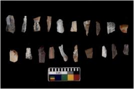 | Description / विवरण | There are n 20 Flake tool; There are multidirectional irregular scar pattern on them. few have blunt edges, Some of them are tapering at one end. |