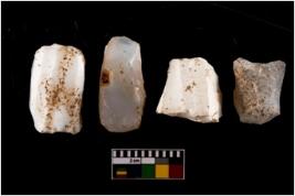 | Description / विवरण | These are n 4 of worked tools. They are tapering at one end and have sharp edges. Some have round base and some have flat base. They show dominant irregular scar pattern. |