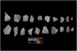 | Description / विवरण | There are n 20 flakes tool; there are multidirectional irregular scar pattern on them, made of short flakes and few have tapering edges. |