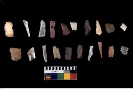 | Description / विवरण | There are n 20 Flake tool; There are multidirectional irregular scar pattern on them. few have blunt edges, Some of them are tapering at one end. |
