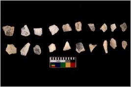| Description / विवरण | There are n 20 flakes tool; there are multidirectional irregular scar pattern on them; made of short flakes and all four have tapering edges. |