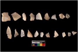 | Description / विवरण | There are n 20 flakes tool; there are multidirectional irregular scar pattern on them; made of short flakes and all four have tapering edges. |