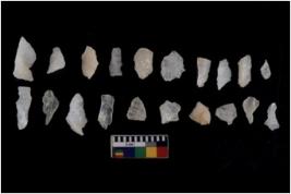 | Description / विवरण | There are n 20 Flake tool; There are multidirectional irregular scar pattern on them. few have blunt edges, Some of them are tapering at one end. |