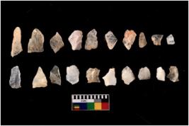 | Description / विवरण | There are n 20 flakes tool; there are multidirectional irregular scar pattern on them, made of short flakes and few have tapering edges. |