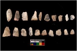 | Description / विवरण | There are n 20 Flake tool; There are multidirectional irregular scar pattern on them. few have blunt edges, Some of them are tapering at one end. |