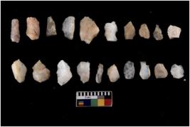 | Description / विवरण | There are n 20 flakes tool; there are multidirectional irregular scar pattern on them; made of short flakes and all four have tapering edges. |