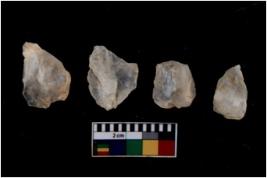 | Description / विवरण | There are n 4 flakes tool; there are multidirectional irregular scar pattern on them; made of short flakes and all four have tapering edges. |